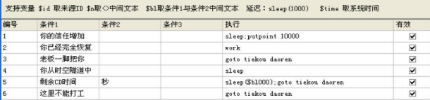 判断的原理就是抓取系统文字信息来执行你想要操作的命令。明白这个原理以后。你可以根据不同门派的技能特点,自己去编写一些简单你自己需要的判断了。对于大佬哪些用到正则编辑的我们只能膜拜了~~